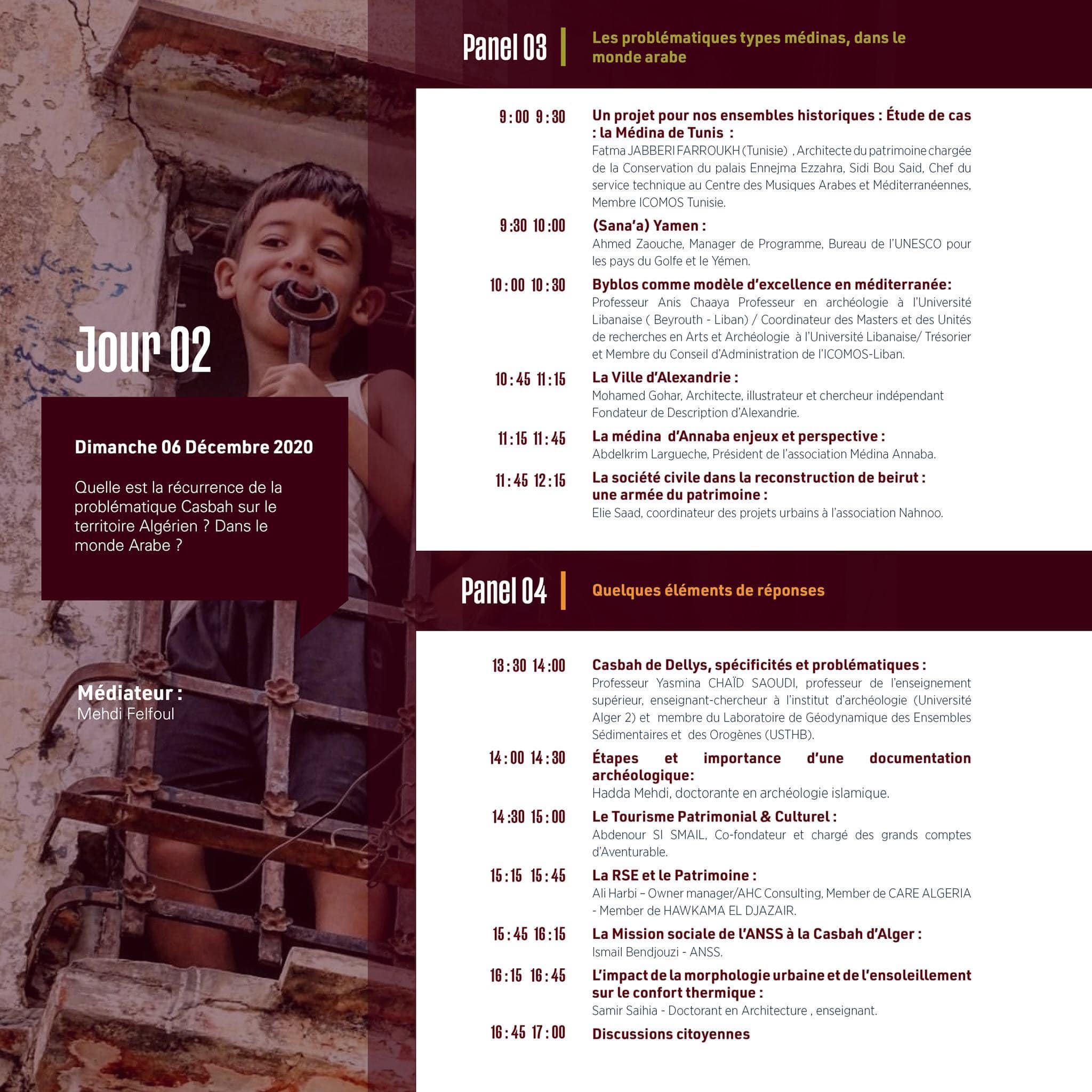 ماذا حدث لقصبة الجزائر العاصمة بعد 28 عاما من إدراجها في قائمة اليونسكو للتراث العالمي؟ ماذا تعني “القيمة العالمية المتميزة” لقصبة الجزائر العاصمة؟ للجزائر؟ ما هو تكرار قضية القصبة على امتداد التراب الوطني؟ في منطقة الشرق الأوسط وشمال إفريقيا؟ نحن ننظم هذا الاجتماع من أجل إحياء النقاش حول هذه المدينة القديمة ، والتي تتيح للجزائر أن تكون جزءًا من قصة الحضارات والإنسانية. حرصًا منا على التذكير بأهمية مشروع القصبة وعلى نطاق أوسع للتراث الثقافي ، في الرؤية الاستراتيجية لجزائر مزدهرة ، ننتهز هذه الفرصة التذكارية لدعوة الخبراء والمهنيين في مجال التراث ، الوطنيين والدوليين ، إلى حدث الذي سيعقد بالكامل عبر الإنترنت ، من 05 إلى 11 ديسمبر 2020. من خلال هذه الأيام من التفكير المواطن ، سنتطرق إلى الأبعاد المختلفة لمشروع إعادة تأهيل القصبة في الجزائر العاصمة ، وسنناقش الأسئلة التالية من خلال حلقات النقاش المختلفة: البعد الإداري والقانوني، البعد الاقتصادي والمالي، البعد التقني، البعد الاجتماعي الثقافي والبعد الجمالي.