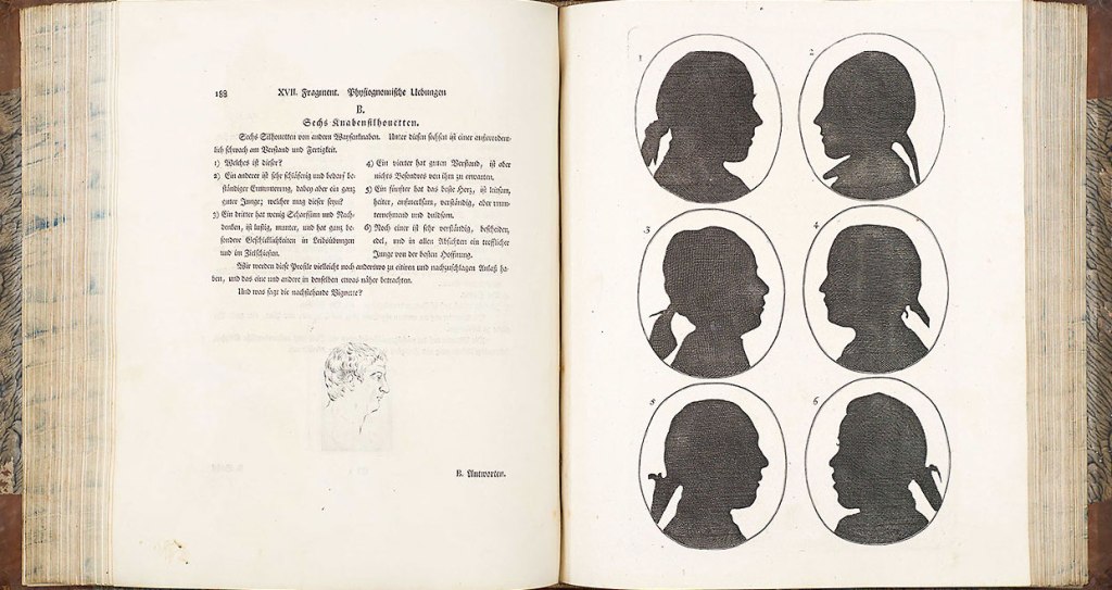 But this practice can also be linked to(in Arabic علم الفراسة) or Physiognomy. The word comes from Greek: physis meaning “nature” and gnomon meaning “judge” which is the practice of assessing a person’s character or personality from their outer appearance, especially the face. Between 1775 and 1778 the Swiss writer and poet Johann Kaspar Lavater published the Physiognomische Fragmente zur Beförderung der Menschenkenntnis und Menschenliebe (Essays on physiognomy). Lavater used a pseudo-scientific system to judge human character from physiognomy. “ He analyzed almost every conceivable connotation of facial features and supplied line drawings with interpretative adjectives appended to each illustration”, recited from The Architecture of Happiness.