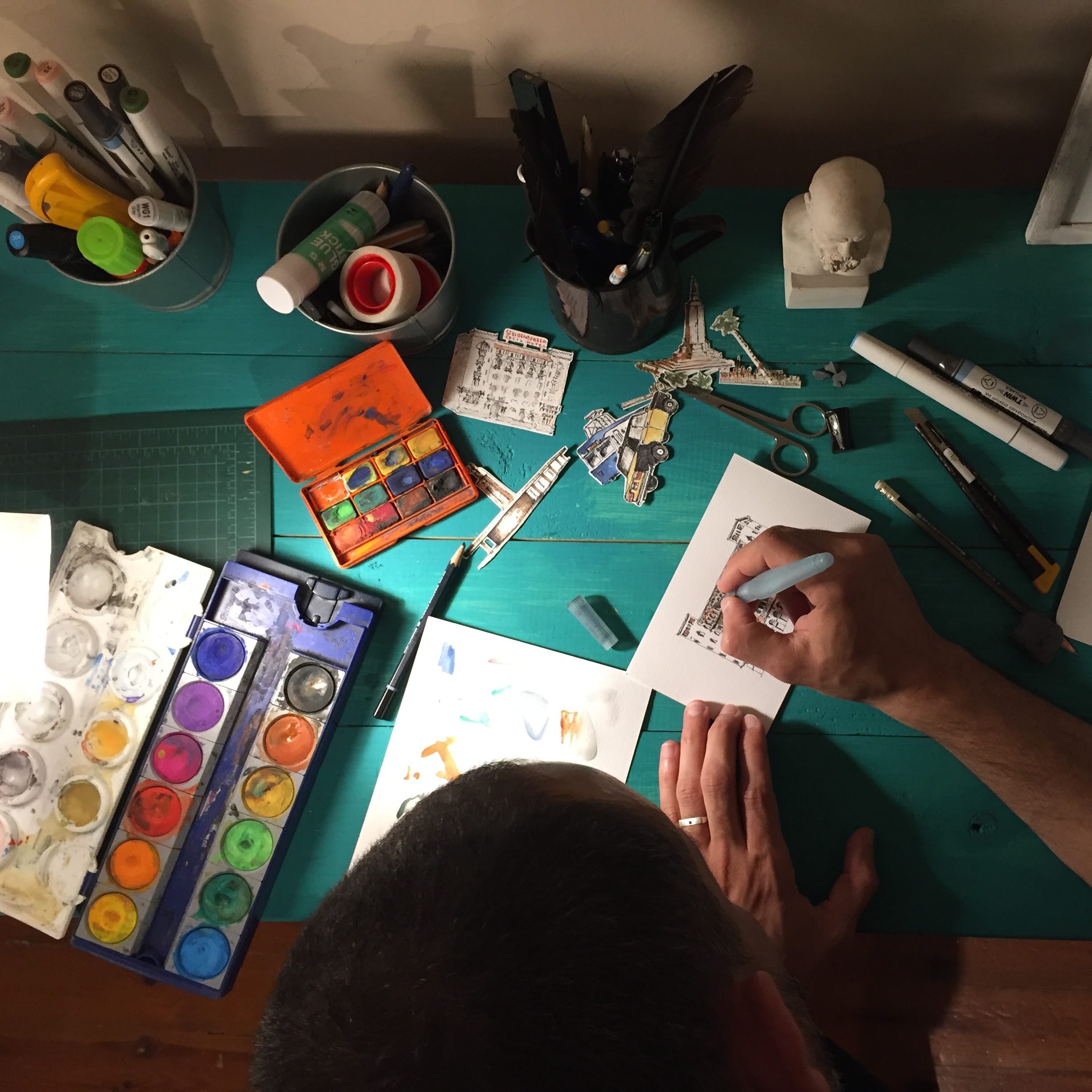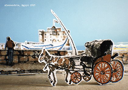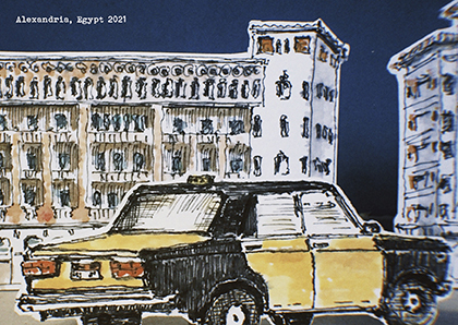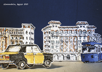 In this series of urban microcosms, I try to observe and reread cities in order to understand how they work. In the form of mini sketches and paintings, I play with the city elements and decompose – recompose structures, spaces, and places that shape them. The final product is the result of mini sketches manually drawn in Gouache and Aquarelle paintings on Arches paper/gold-pressed 300 g/m2, size 14.8 x 10.5 cm. They are later to be produced in printed copies of limited numbers, in order to be accessible to wider groups as a way to exchange views and perspectives on the city.