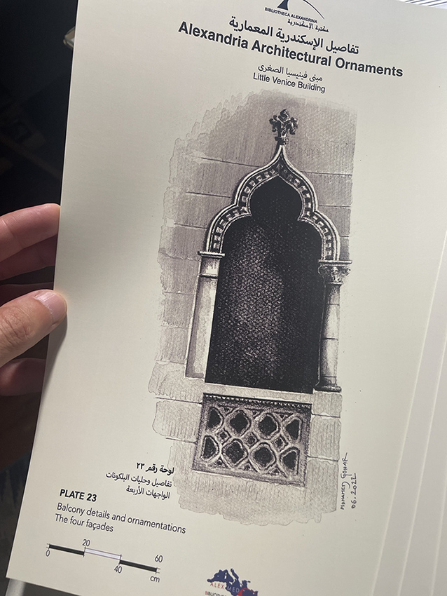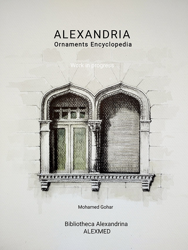 - The work is still ongoing on book volume with Alex Med Bibliotheca Alexandrina ” Alexandria ornaments Encyclopedia: The Italian Architecture ” that aims at documenting the ornaments of heritage buildings in the city.